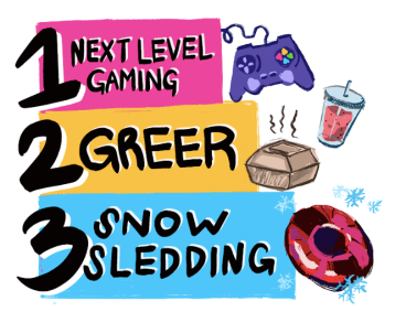 Taking the bronze medal is snow tubing/sledding. This is a classic winter activity that is made more fun by the gigantic hill that the Deerfield campus provides. What’s more fun than hurtling down a hill with friends? Unfortunately though, some people have gotten hurt while sledding so if you do this, be sure to be safe and watch out for your friends. Plus there aren’t that many sleds, so you should pick a time when the hill isn’t too busy.